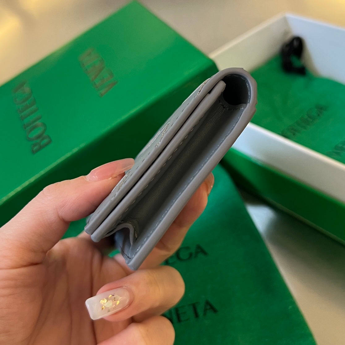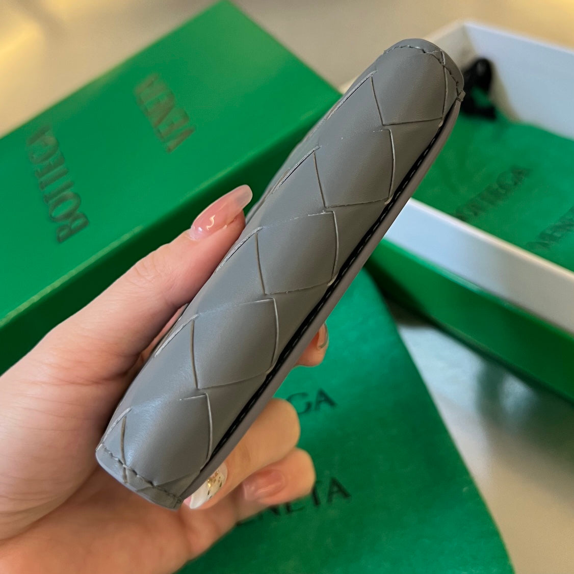 Bottega Veneta INTRECCIATO BUSINESS 11 GRAY CALFSKIN CARD CASE