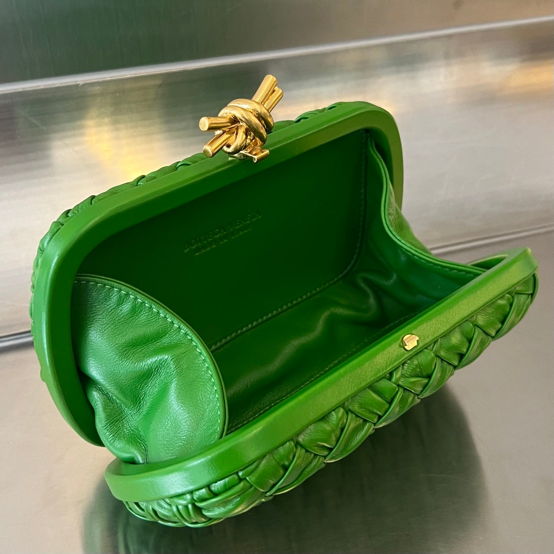 Bottega Veneta KNOT 19 IN EMERALD GREEN LAMBSKIN