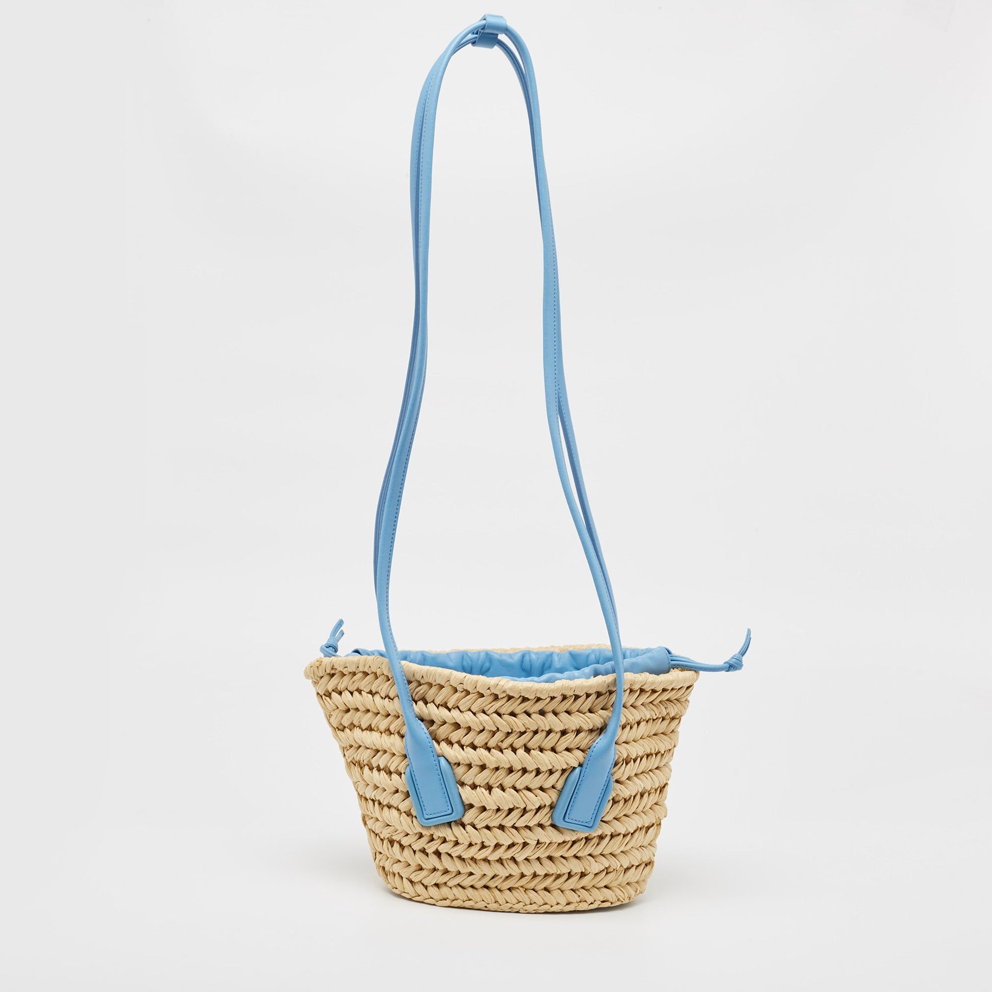 Bottega Veneta Light Blue/Beige Raffia and Leather Small Arco Basket Bag