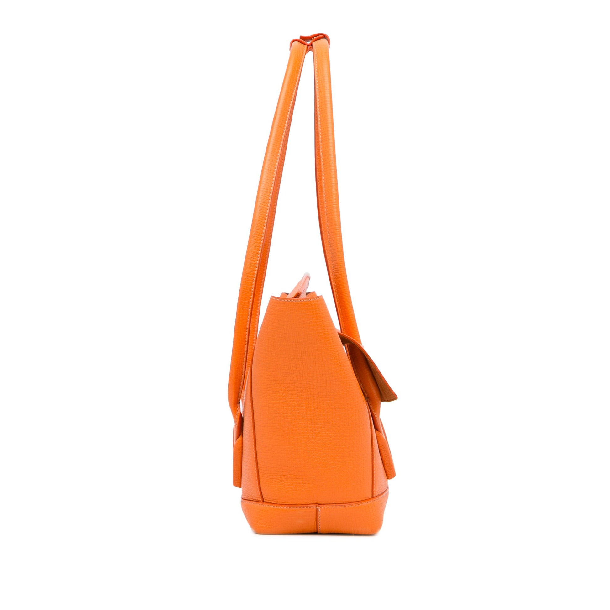 Product Details: Orange Bottega Veneta Medium Arco Shoulder Bag. The Arco features a leather body, rolled leather handles, a top flap, and an interior slip pocket. 11.4" L x 12.6" W x 3.5" D. Serial number B08506171M.