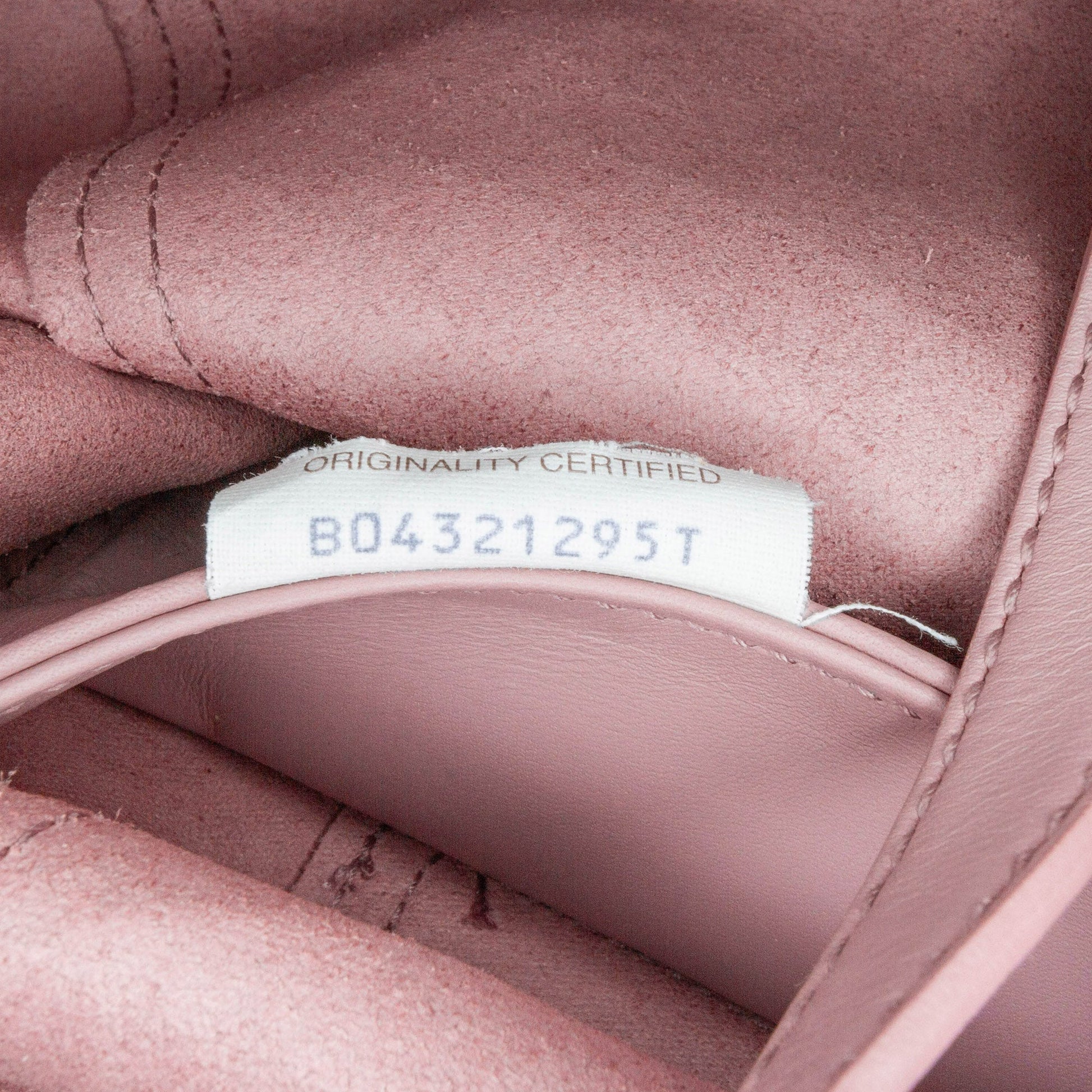 Product Details: Pink Bottega Veneta Leather Intrecciomirage Tote. This tote bag features an embossed leather body, flat leather shoulder straps, and an open top. 10.2" L x 13.8" W x 3.9" D, 7.9" drop. Serial number B04321295T.