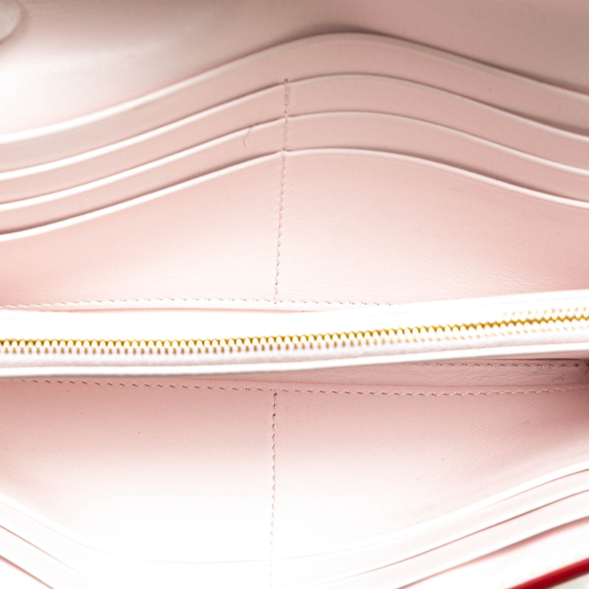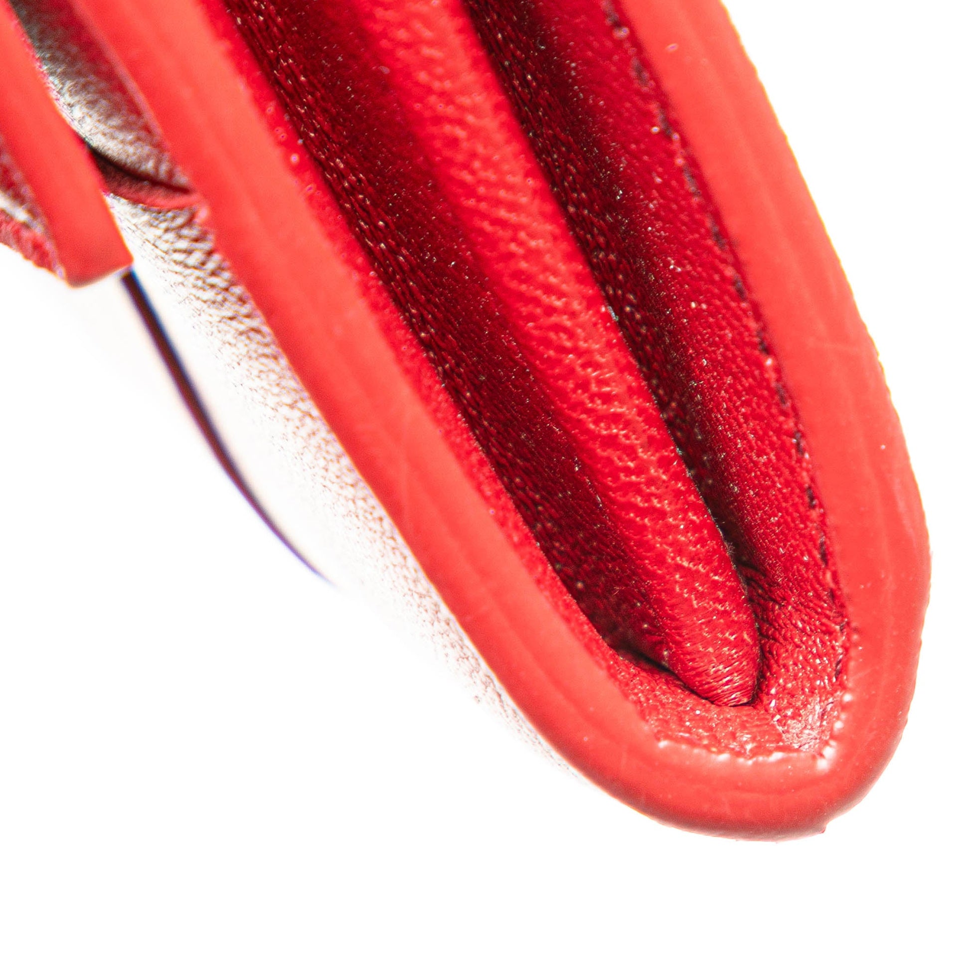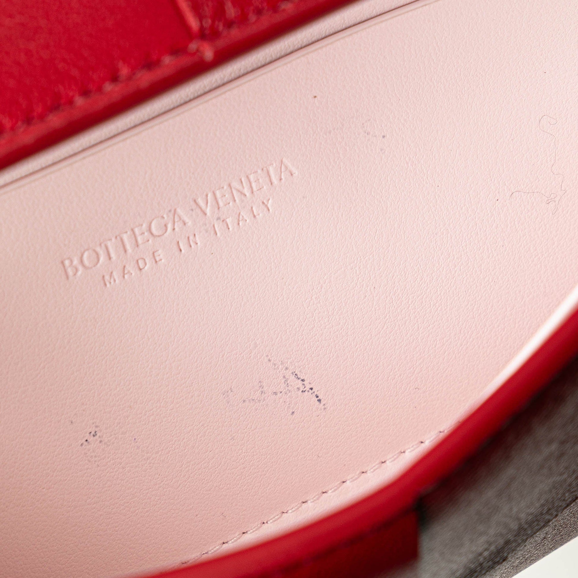 Product Details: Red Bottega Veneta Large Lambskin Intreccio Cassette Flap Wallet. The Cassette Flap wallet features a woven lambskin leather body, a front flap with magnetic snap closures, and interior zip and slip pockets. 3.9" L x 7.5" W x 1.2" D.