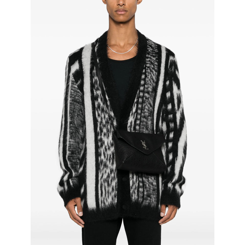 black lambskin cracked effect signature Cassandre logo plaque foldover top with magnetic fastening adjustable detachable shoulder strap internal logo patch internal card slot removable pouch