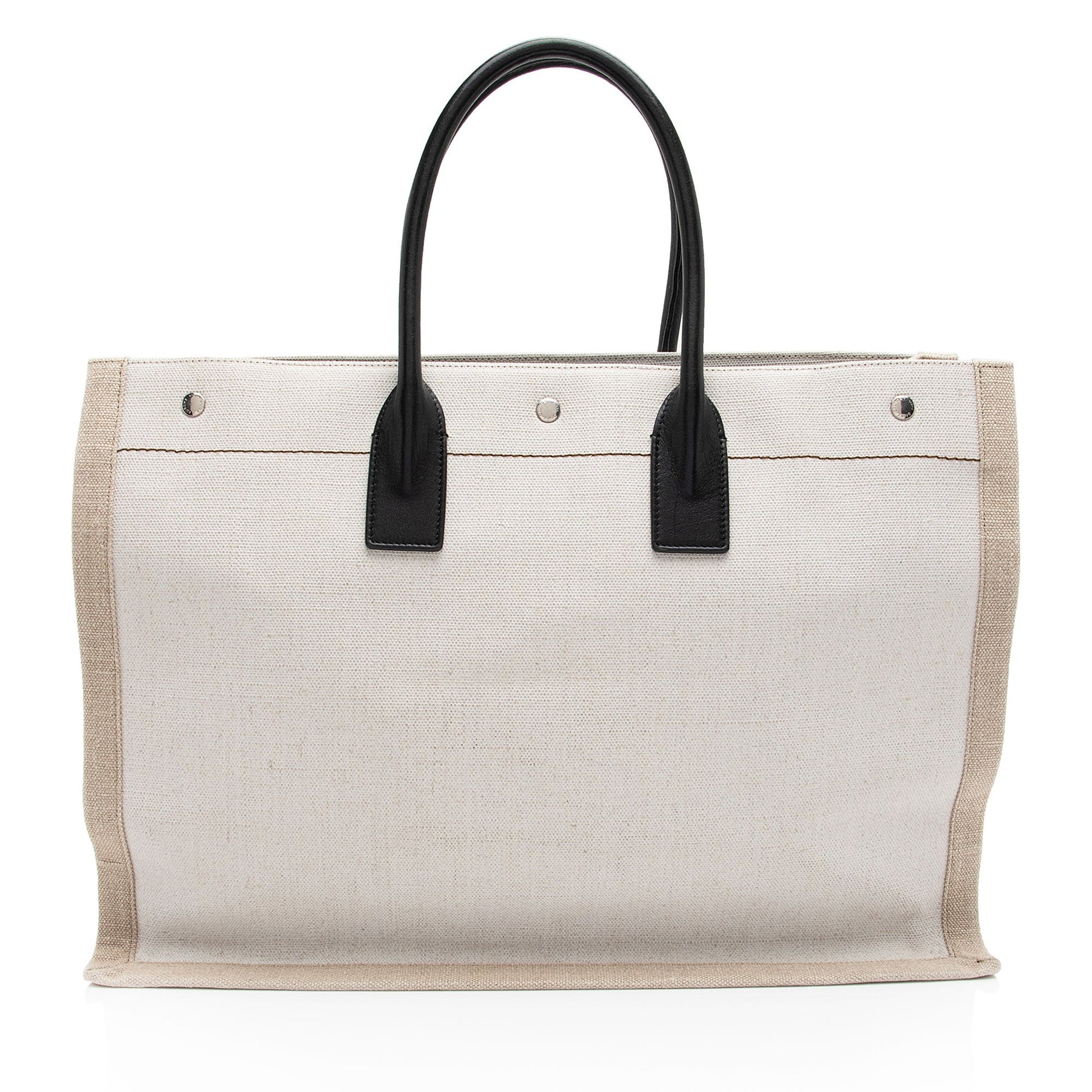 Saint Laurent Canvas Calfskin Rive Gauche Large Tote (SHF-zNZTfi)