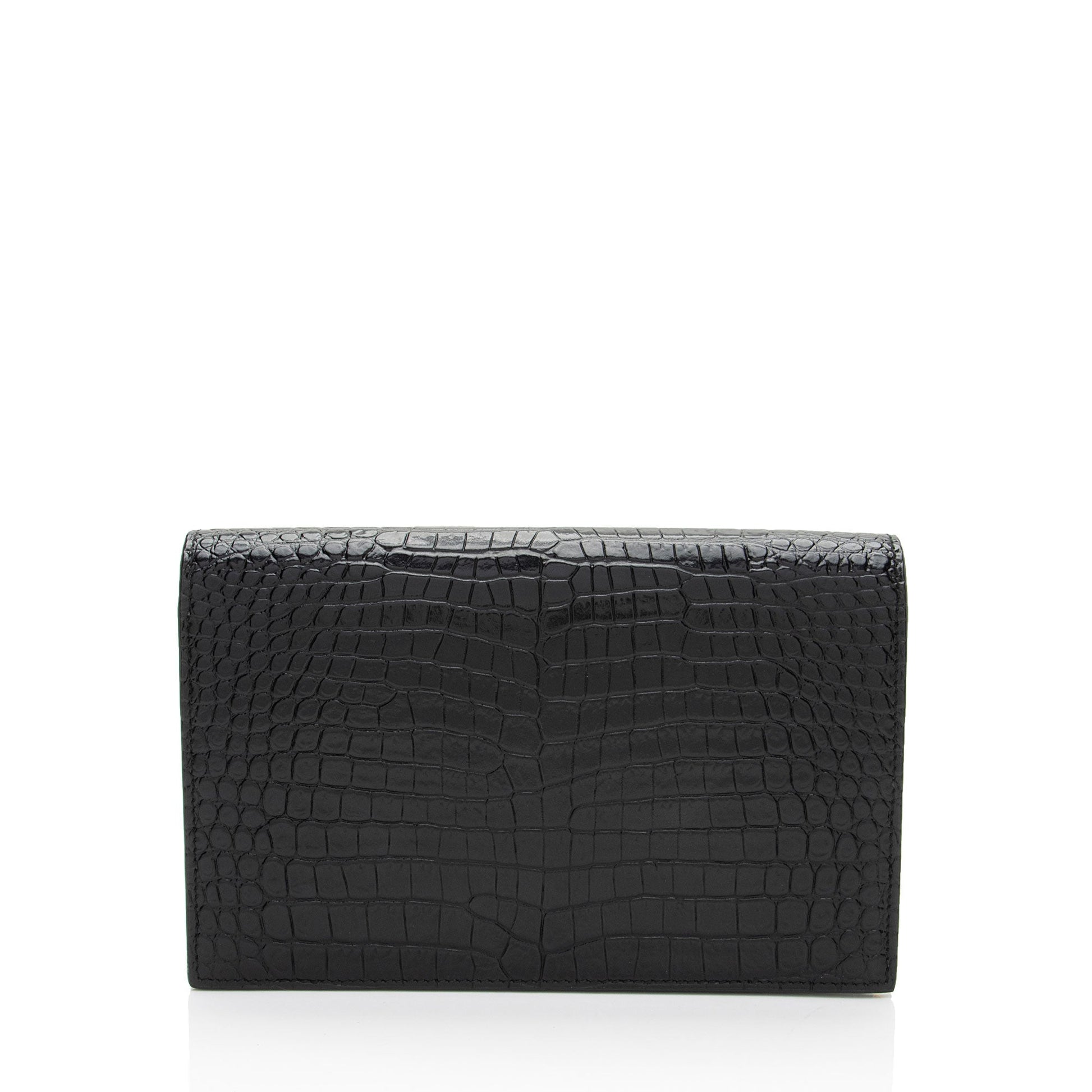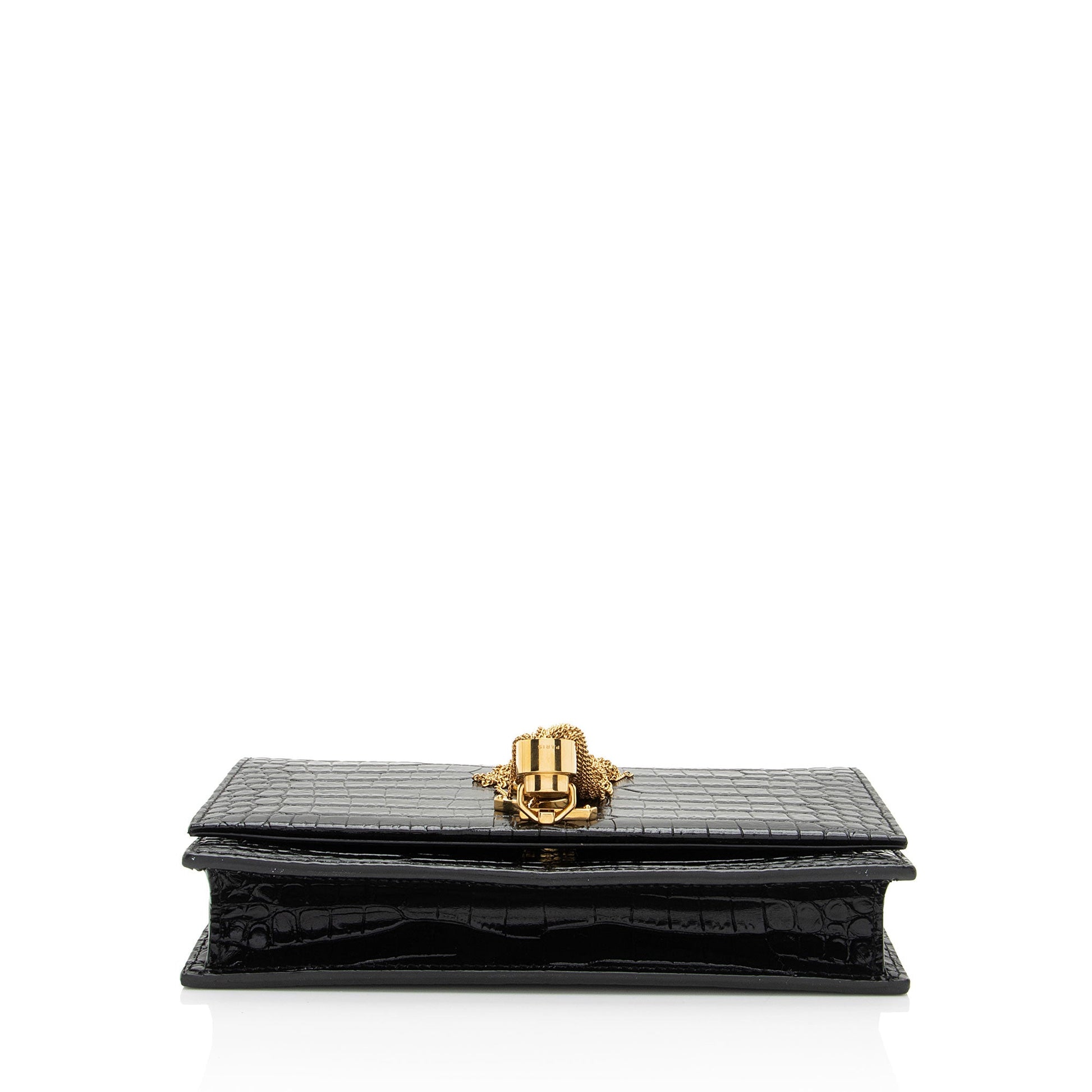 Saint Laurent Croc Embossed Leather Monogram Kate Tassel Chain Wallet (SHF-5rBHmu)