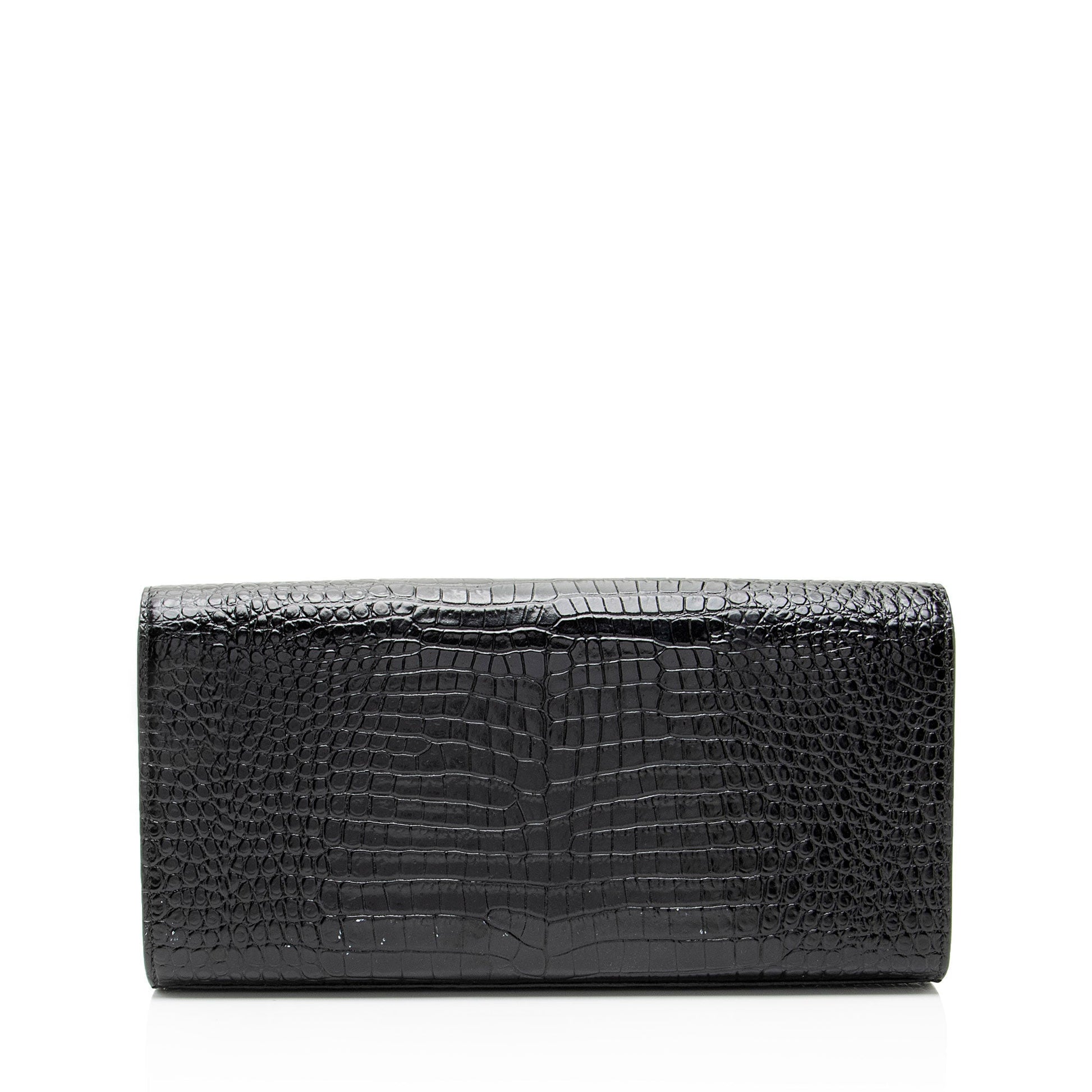 Saint Laurent Croc Embossed Leather Monogram Kate Tassel Clutch