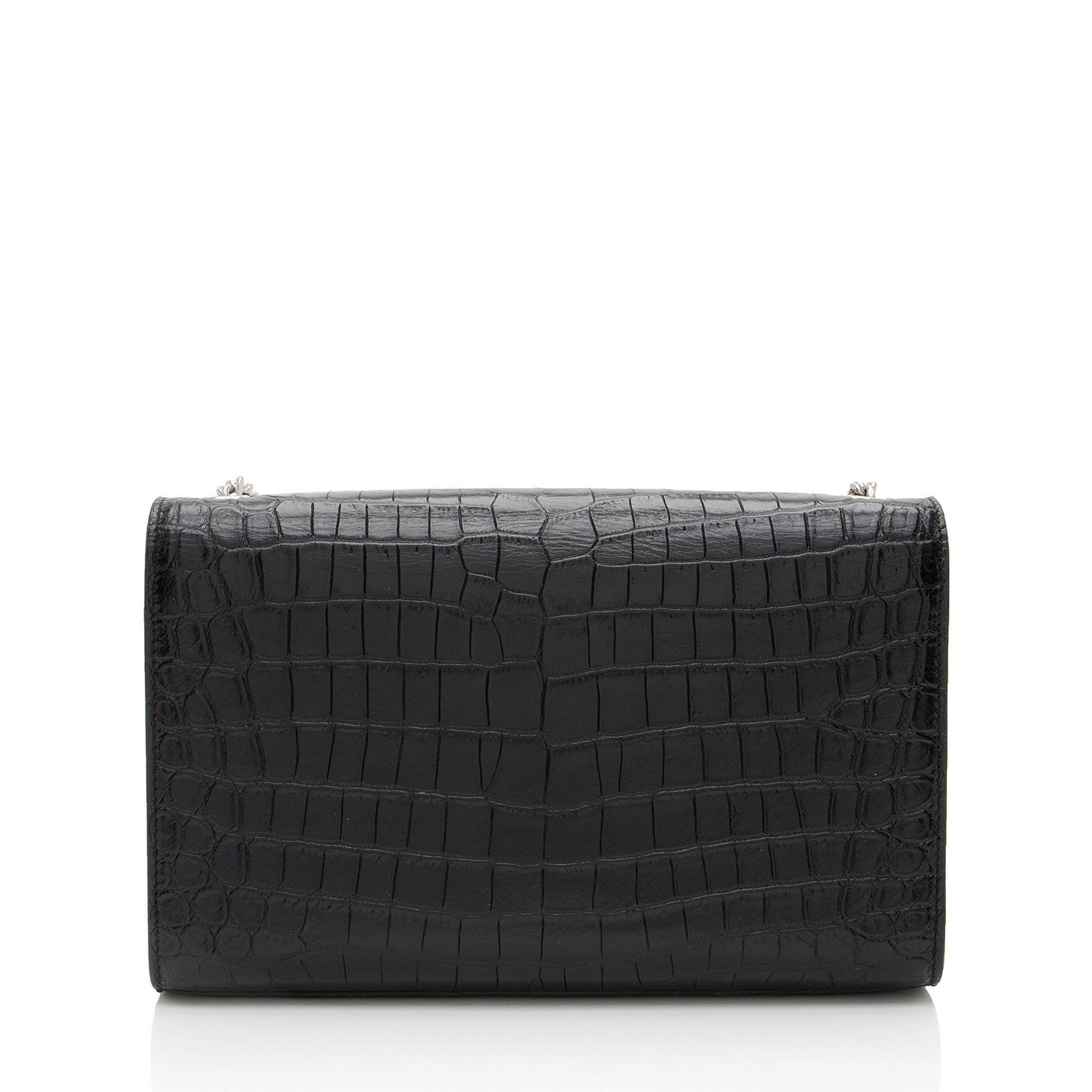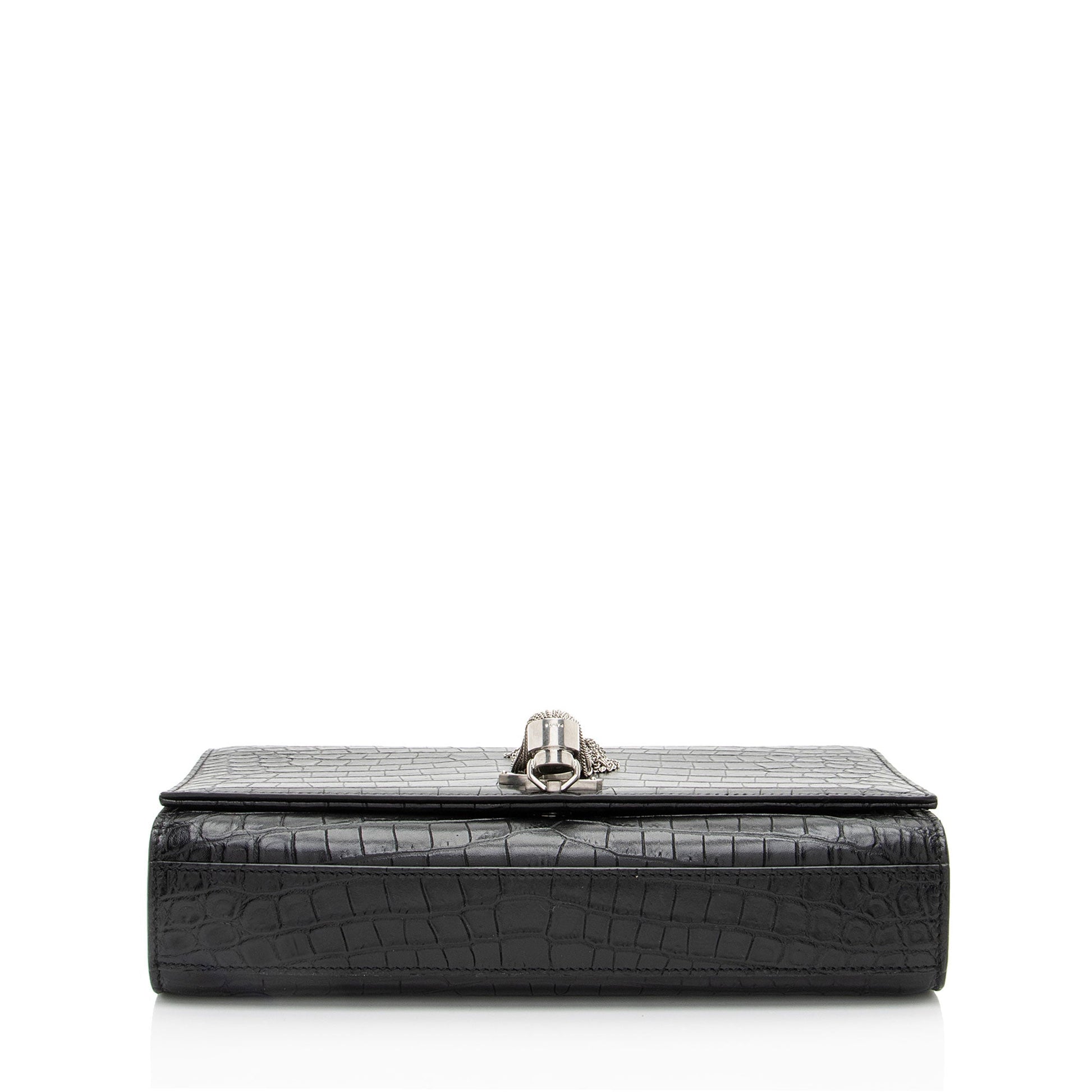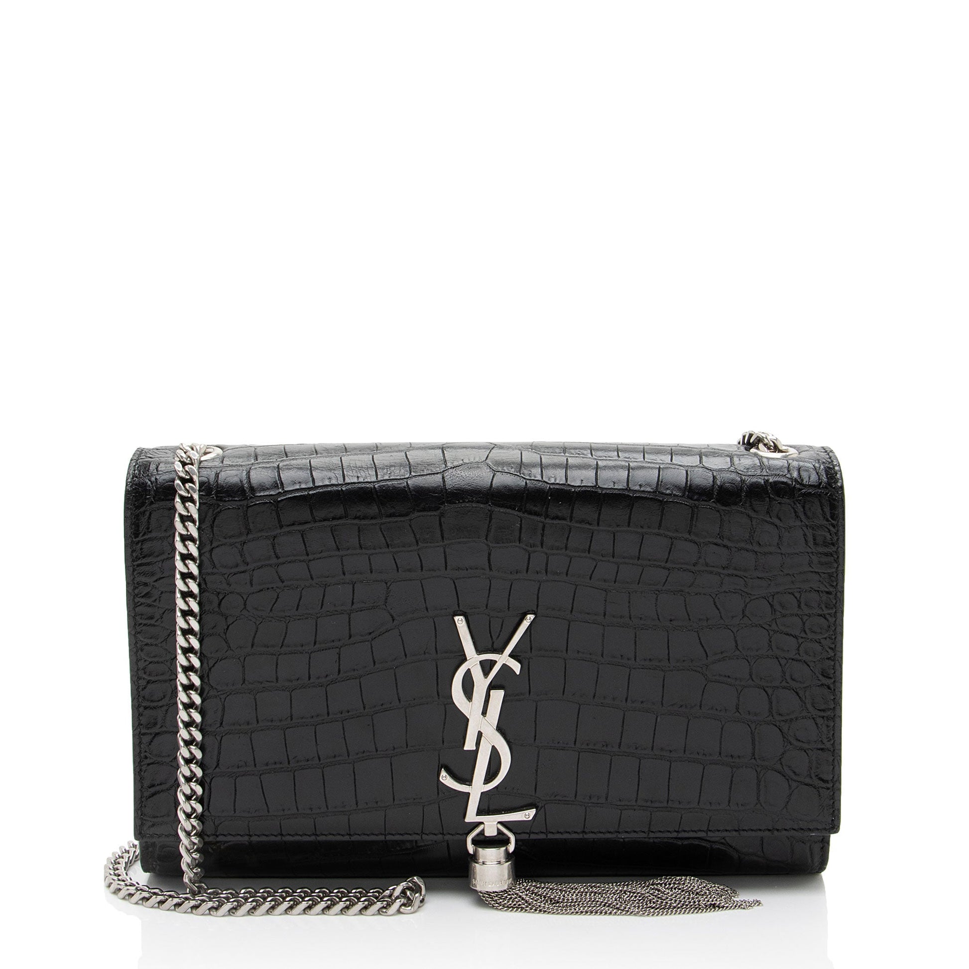 Saint Laurent Croc Embossed Leather Monogram Kate Tassel Medium Shoulder Bag