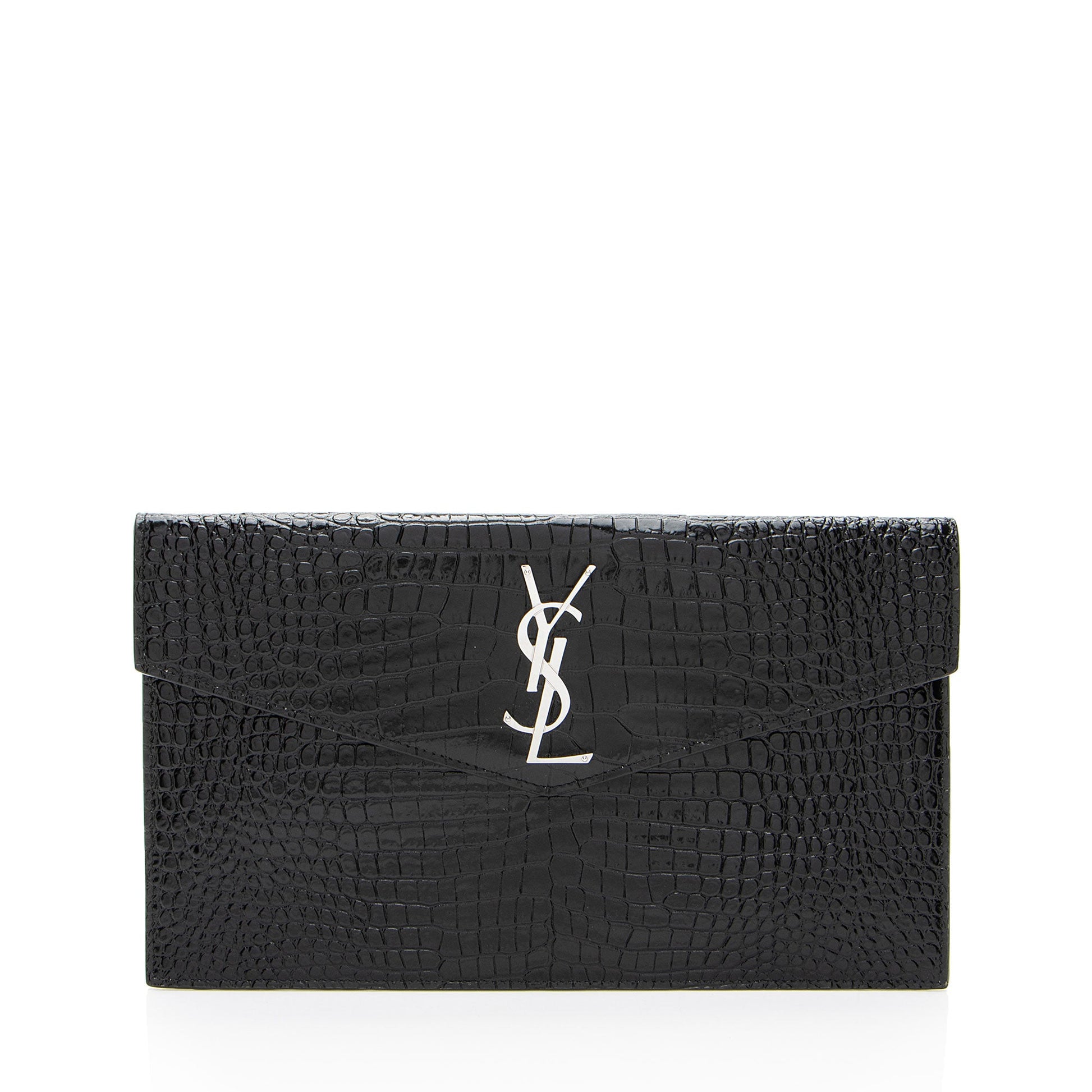 Saint Laurent Croc Embossed Leather Monogram Uptown Clutch (SHF-WiMoG6)