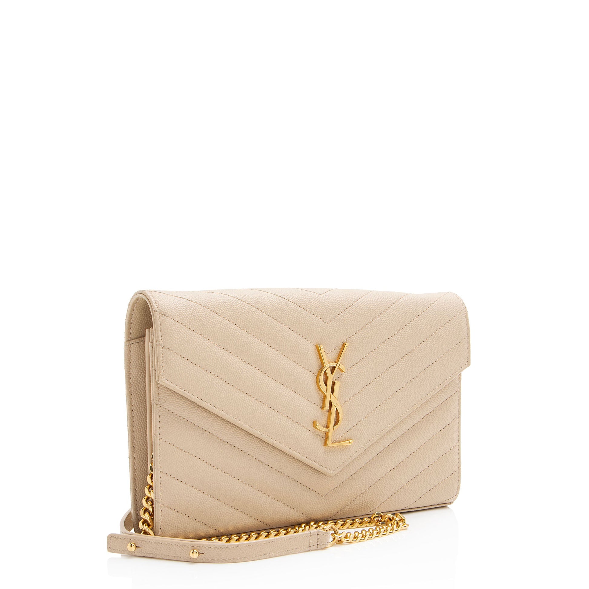 Saint Laurent Matelasse Grain de Poudre Monogram Chain Wallet (SHF-4h5maT)