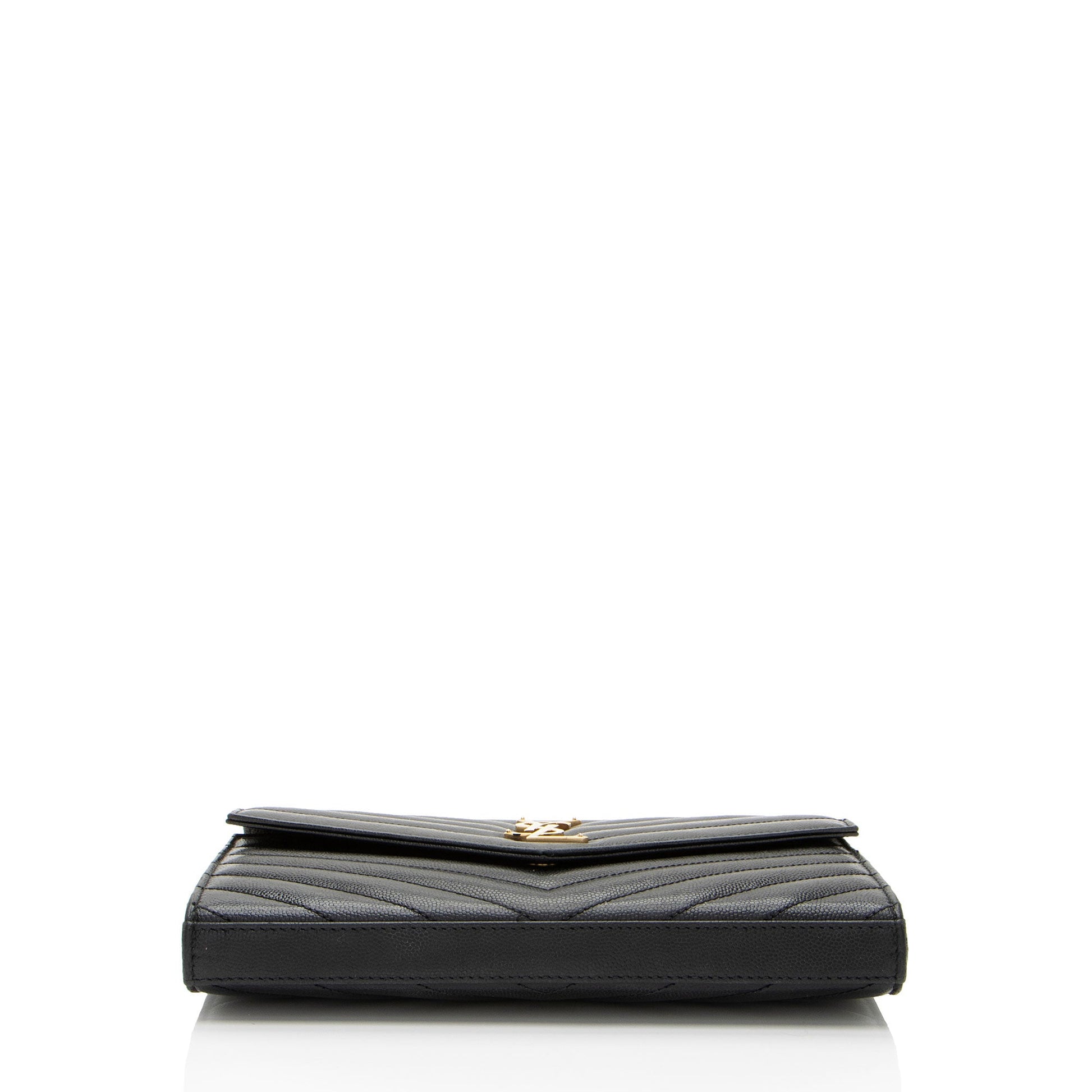 Saint Laurent Matelasse Grain de Poudre Monogram Chain Wallet (SHF-CtcP6l)