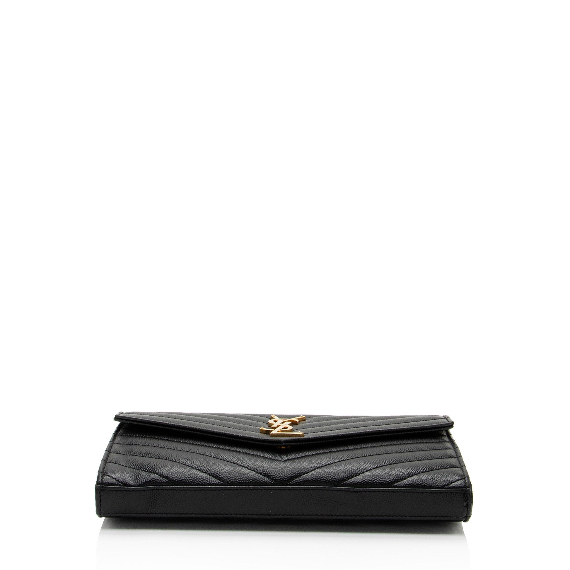 Saint Laurent Matelasse Grain de Poudre Monogram Chain Wallet (SHF-fpbhkV)