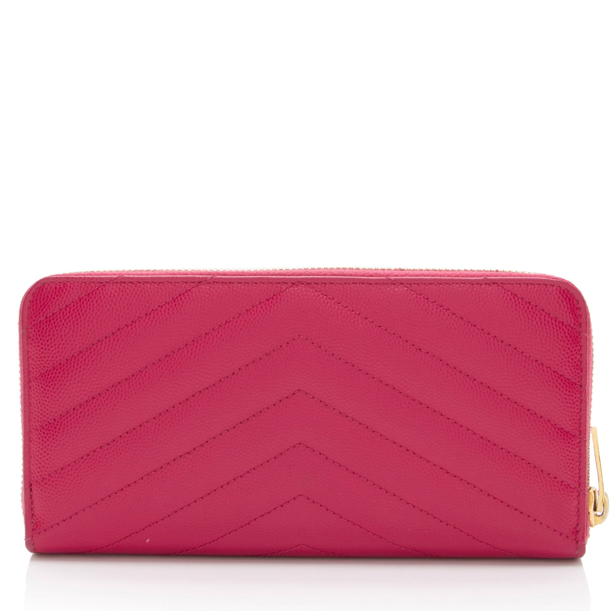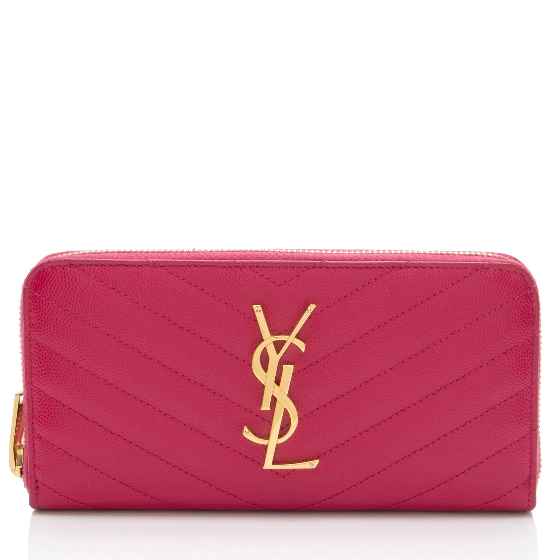 Saint Laurent Matelasse Grain de Poudre Monogram Zip Around Wallet (SHF-ITLdc5)
