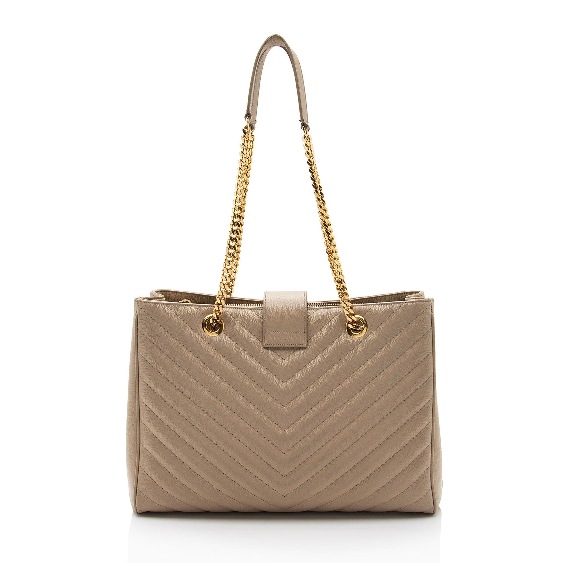 Saint Laurent Matelasse Grain de Poudre Monogram Chain Shopper Tote (SHF-bgDHik)