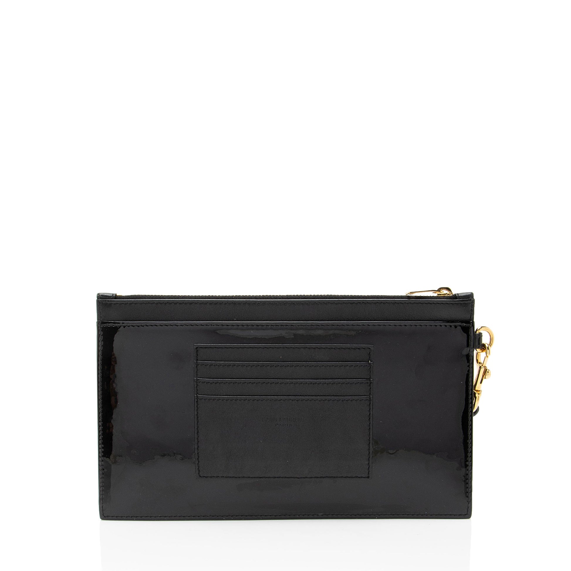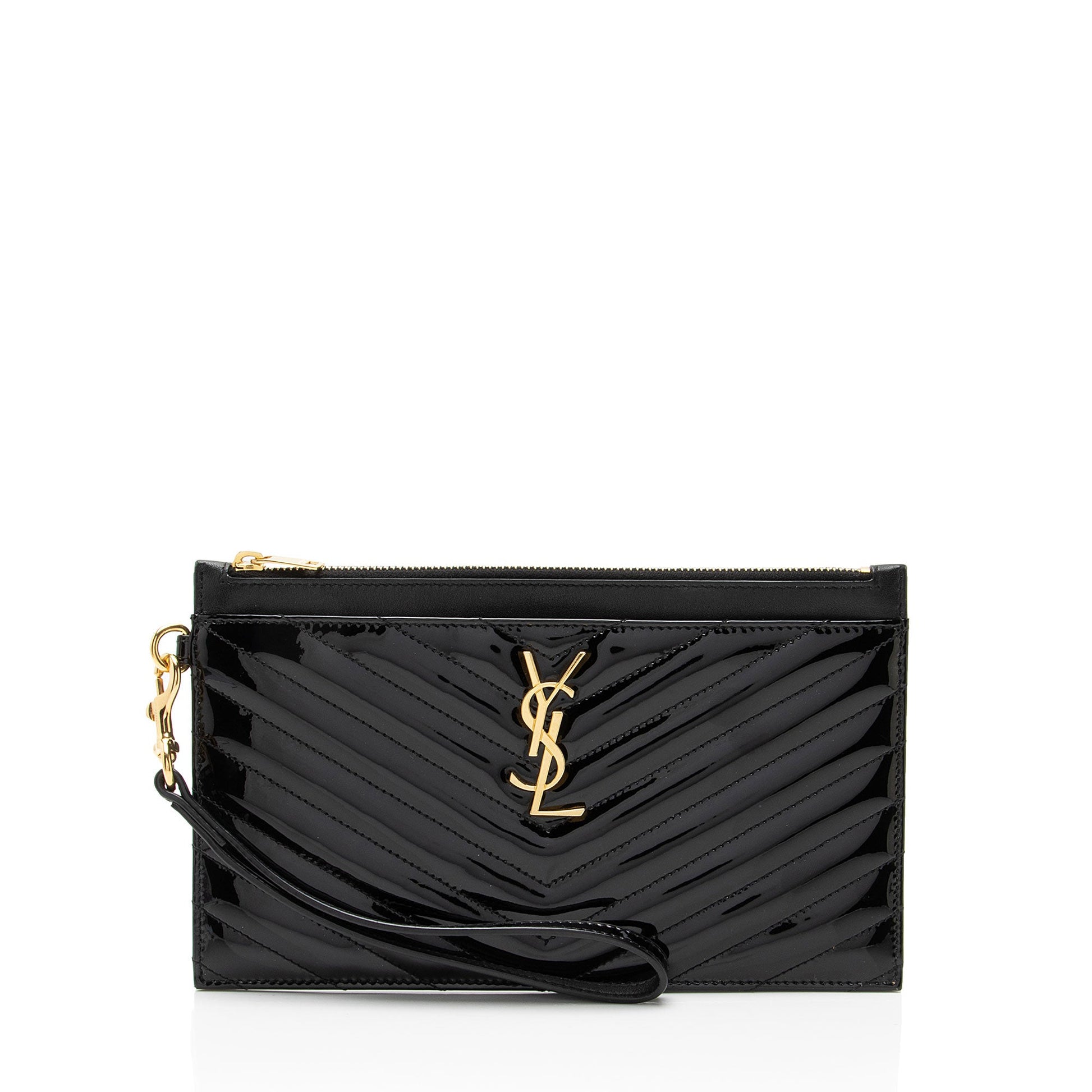 Saint Laurent Matelasse Patent Leather Monogram Bill Pouch