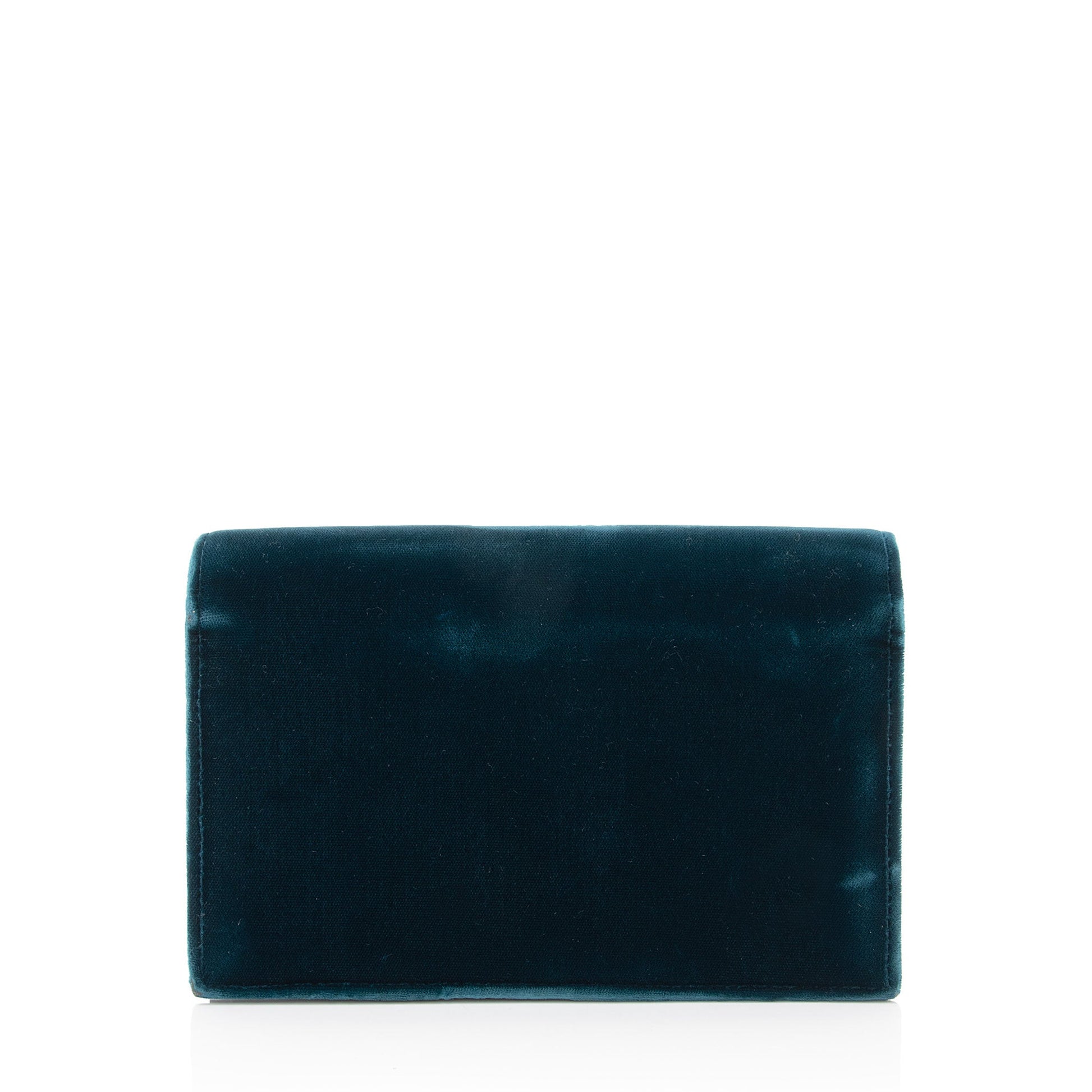 Saint Laurent Velvet Crystal Monogram Kate Tassel Chain Wallet (SHF-eGts0Q)
