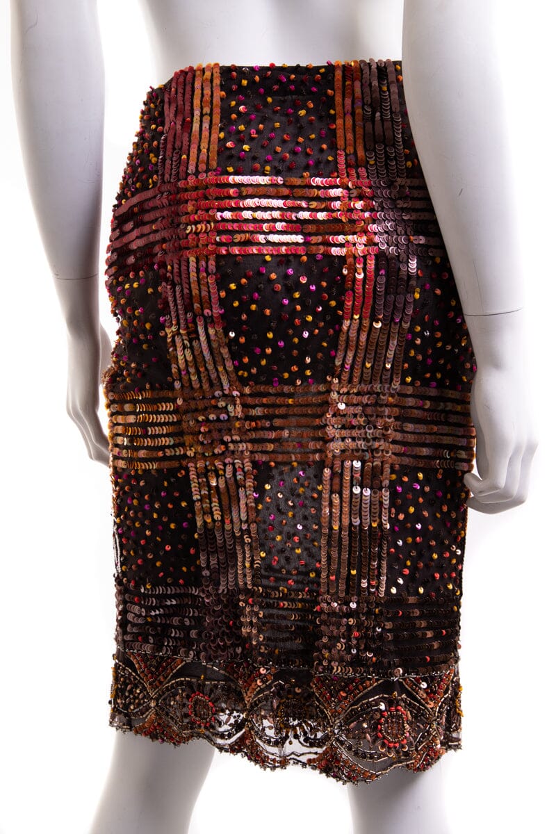 Valentino brown and peach embellished skirt with hand beading and embellishments throughout, featuring a concealed center back zipper.
