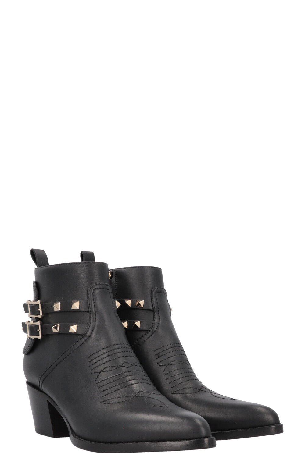 VALENTINO Rockstud Embroidered Cowboy Ankle Boots Black