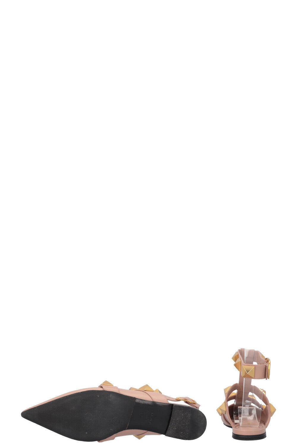 Die Roman Stud Flats von Valentino vereinen schlichte Eleganz mit einem Hauch von Rock-Chic. Die goldfarbenen, markanten Nieten setzen einen raffinierten Akzent auf dem zarten Nude-Ton des Leders. Flach, bequem und trotzdem ein Statement – perfekt für entspannte Looks mit Stil.