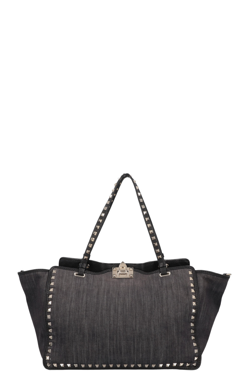 Die Valentino Rockstud Tote in edlem Denim ist eine perfekte Kombination aus luxuriösem Design und urbanem Chic. Die Tote überzeugt mit der klassischen Rockstud-Verzierung, die ihr einen markanten, modernen Charakter verleiht. Das weiche Denim-Material sorgt für einen entspannten Look, während die präzise Verarbeitung und das elegante Design die Tasche zu einem zeitlosen Begleiter machen. Die grosszügige Inneneinteilung bietet Platz für alles, was man im Alltag braucht, und der abnehmbare Schulterriemen ermöglicht es, die Tasche sowohl als Handtasche als auch als Crossbody zu tragen.