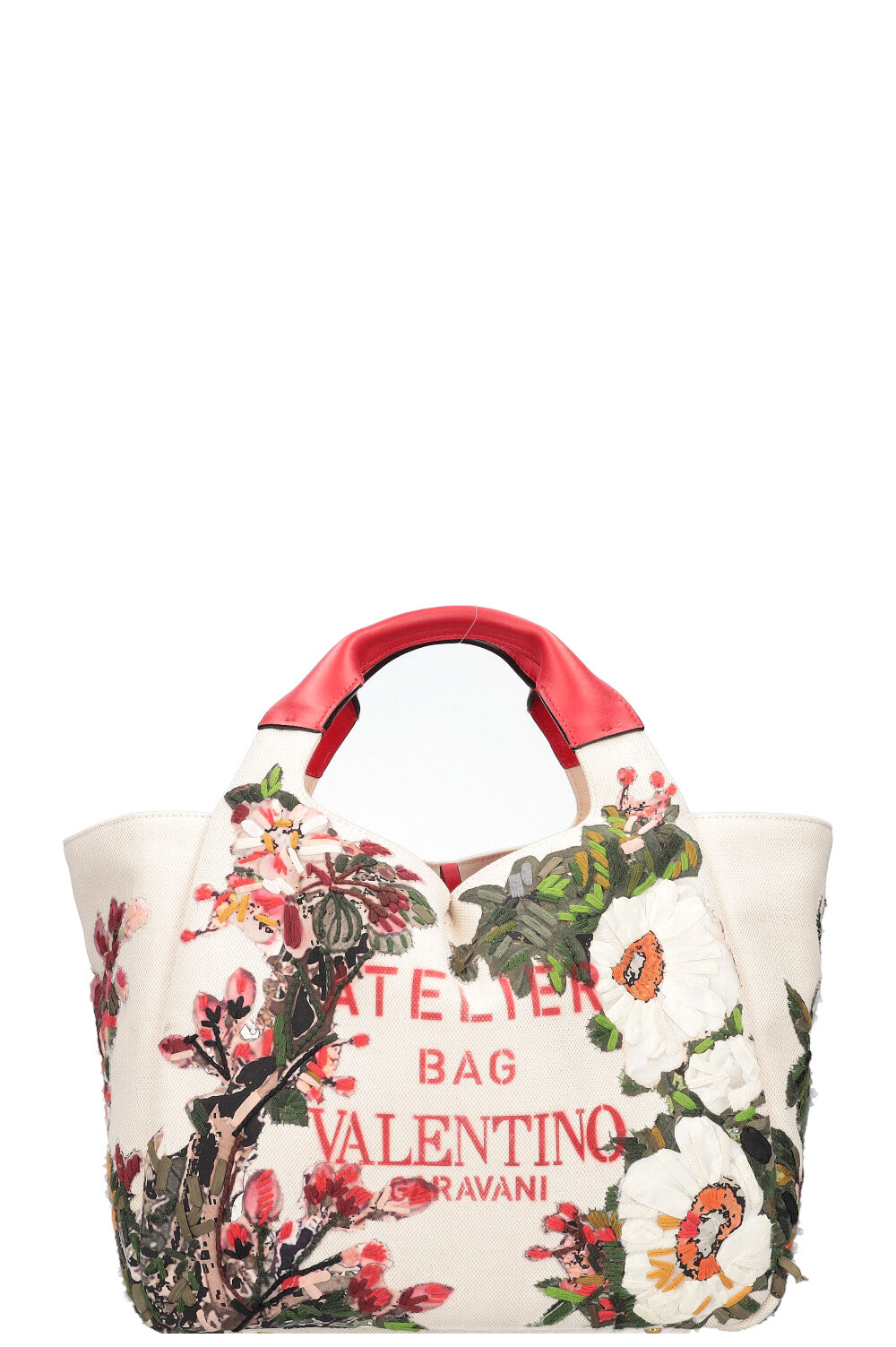 VALENTINO Atelier Bag Embroidered Canvas Beige
