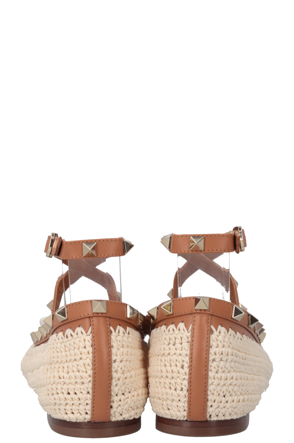 VALENTINO Raffia Rockstud Leather Ballet Flats