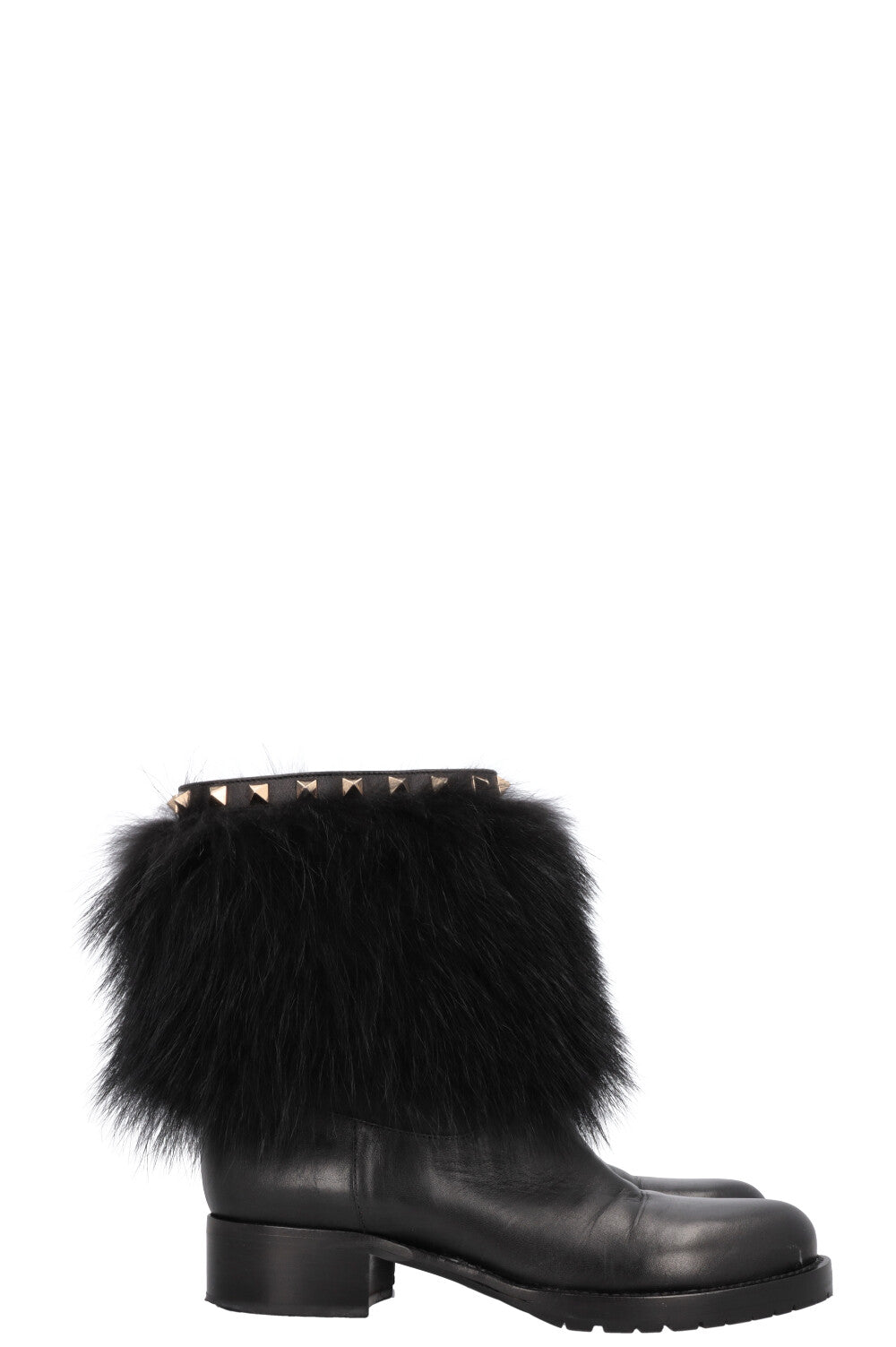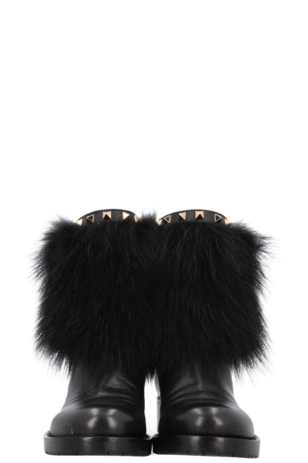 VALENTINO Rockstud Boots Leather Fur Black