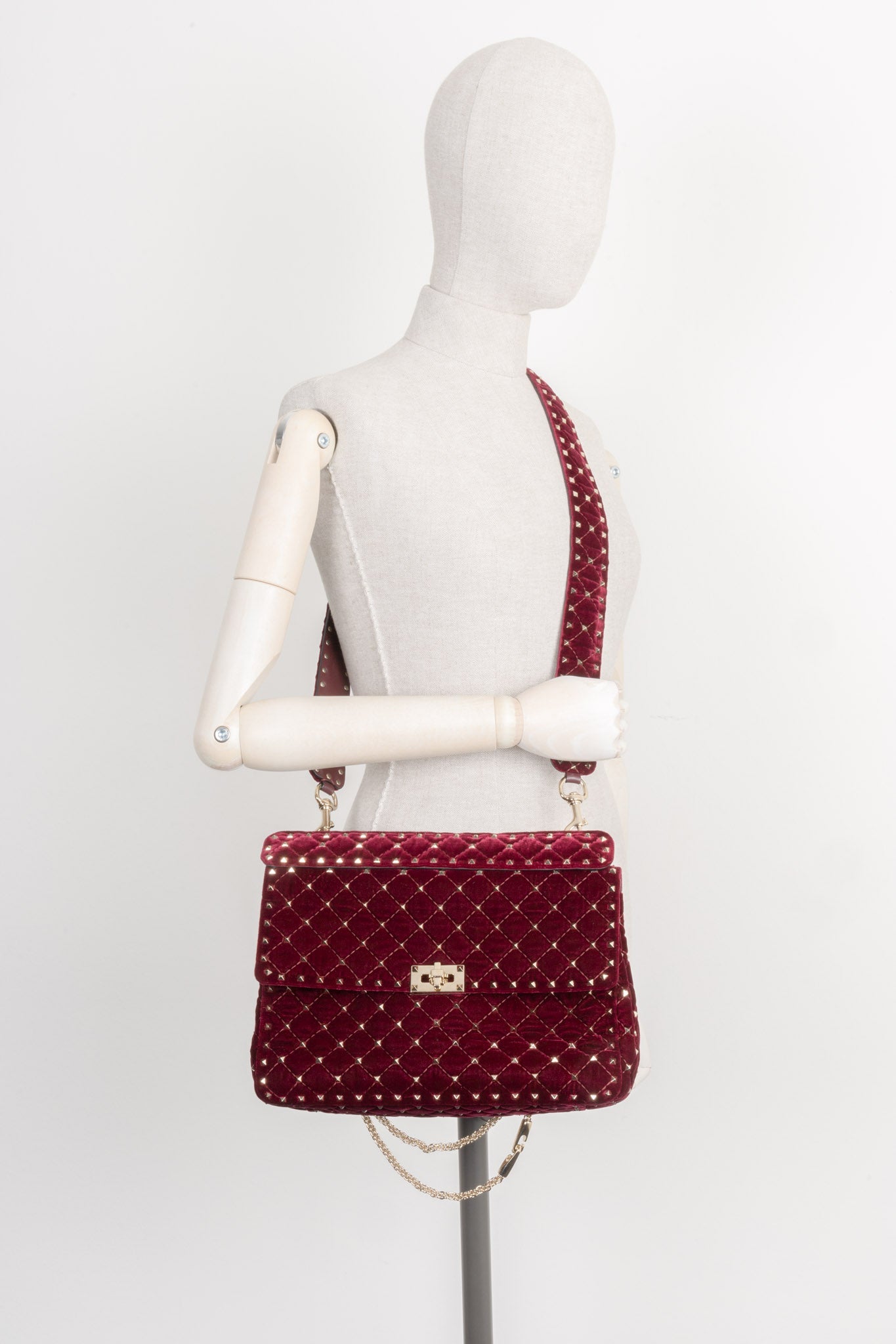 VALENTINO Spike Rockstud Top Handle Bag Velvet Red