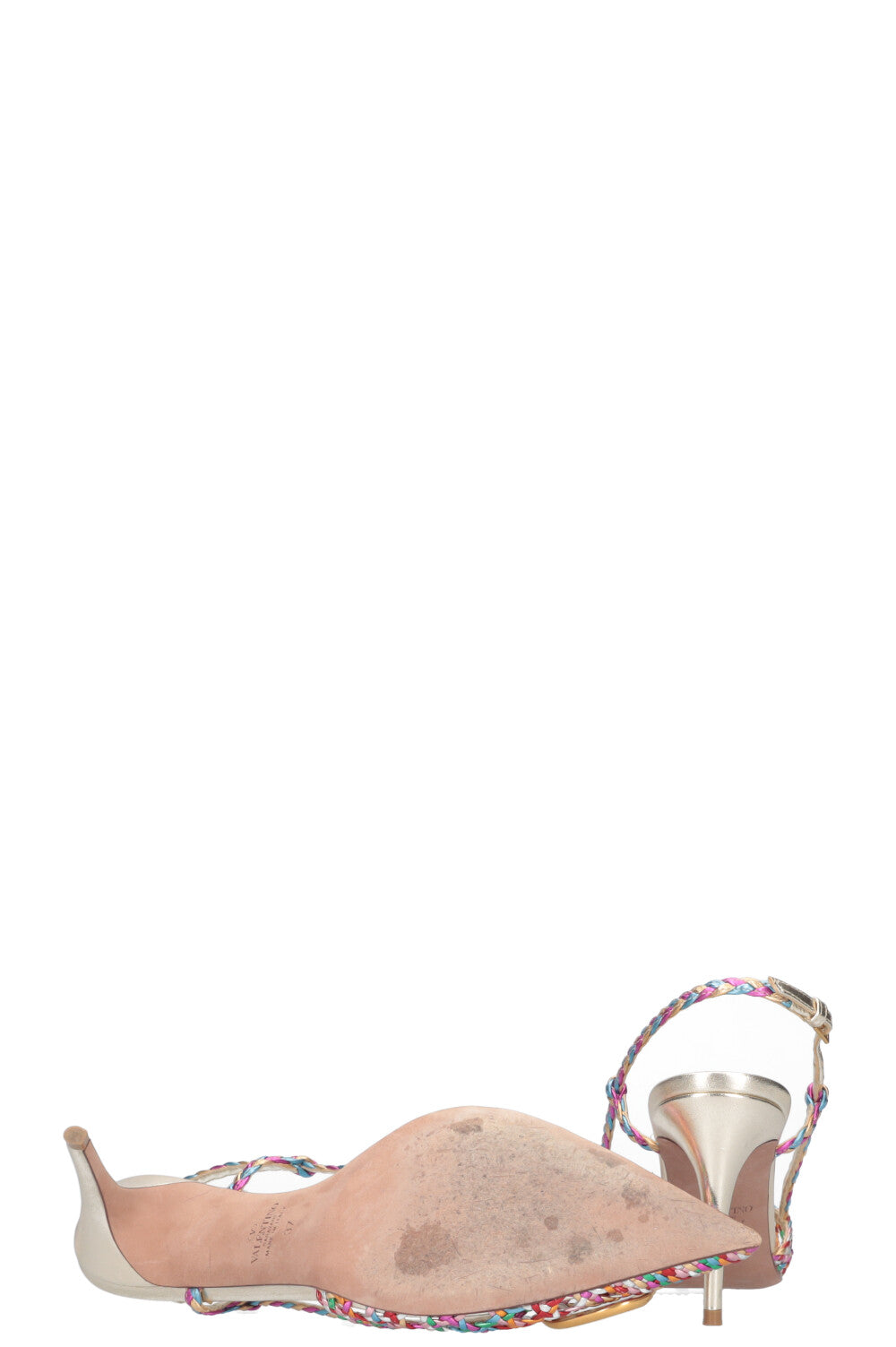 We love: Valentino Slingbacks aus einem metallischen Nappaleder Miniaturgeflecht - mit ikonischer VLogo Verzierung an den Spitzen