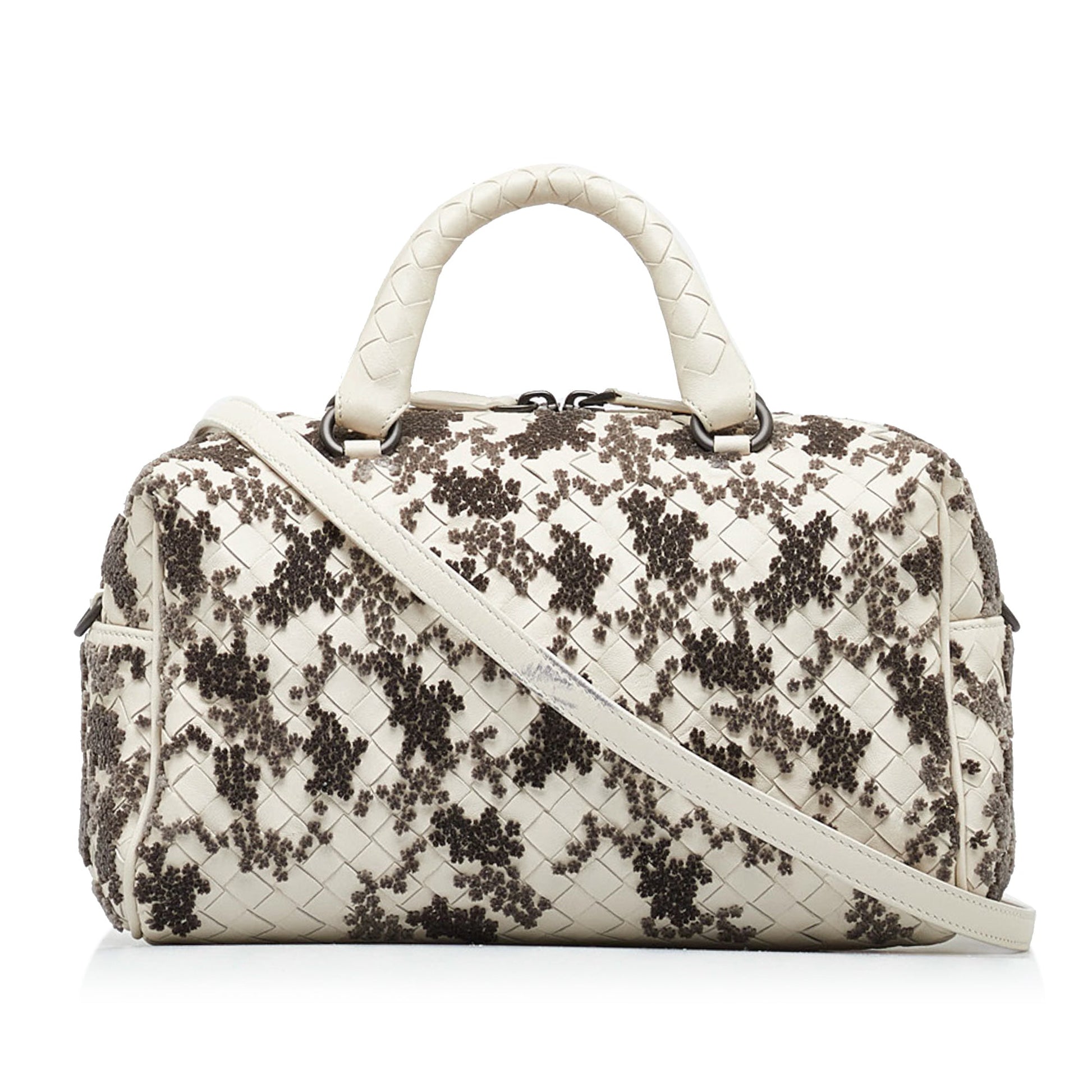 White Bottega Veneta In Mist Intrecciato Flocked Velvet Bouquet Duffel Bag Satchel
