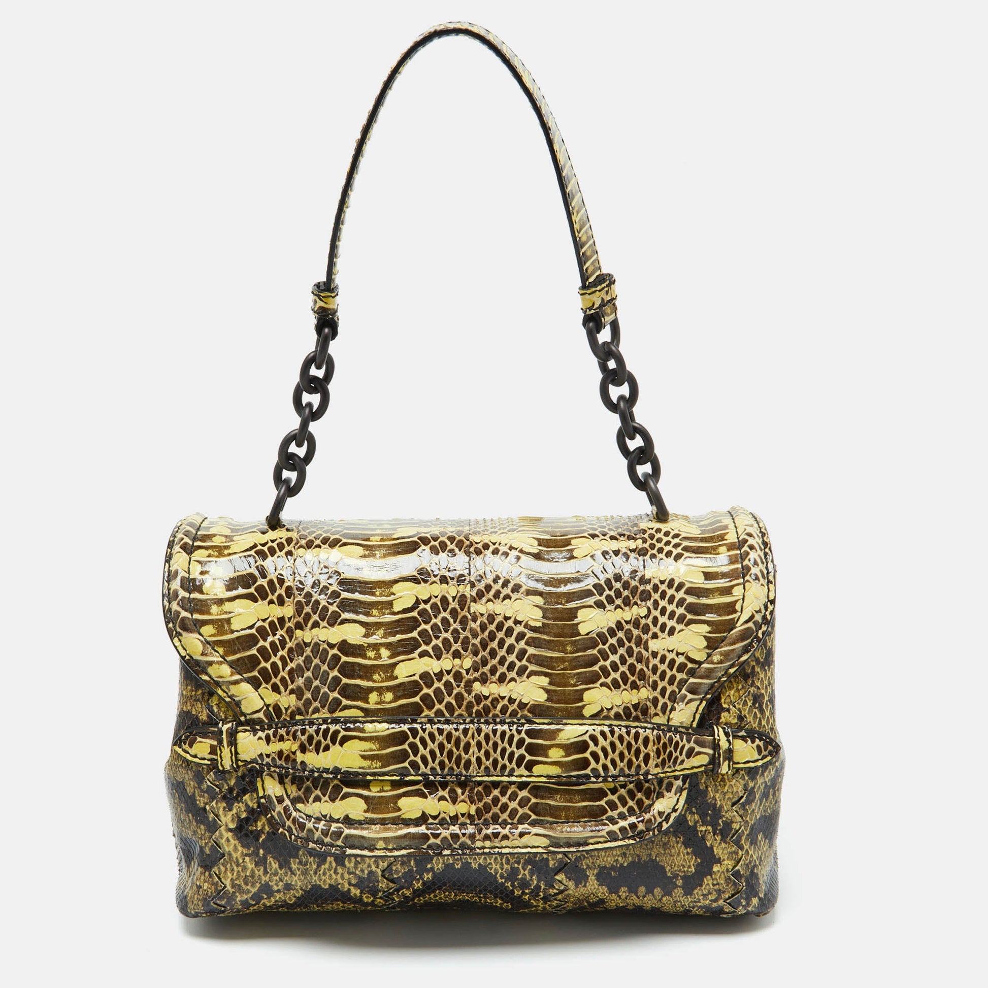 Discover the exquisite Bottega Veneta Yellow/Brown Intrecciato Karung and Watersnake Detail Flap Shoulder Bag, a stunning addition to your collection of designer luxury handbags. Crafted with premium materials, this bag showcases a unique design that balances elegance and practicality, making it perfect for any occasion. As you explore options to buy luxury handbags online, our price comparison platform ensures you find the best deals available. Trust in Bottega Veneta’s renowned reputation for quality and craftsmanship. With our expert insights, you can make informed choices while enjoying the luxury you deserve. Elevate your style with this iconic piece today.